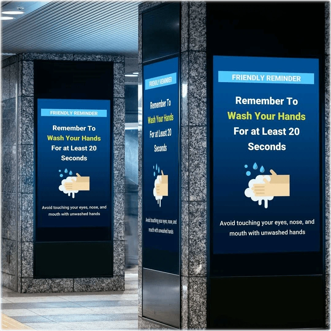 Digital signage refers to display technologies like LED walls, projection and LCD monitors to vividly display webpages, videos, directions, restaurant menus, marketing messages or digital images.